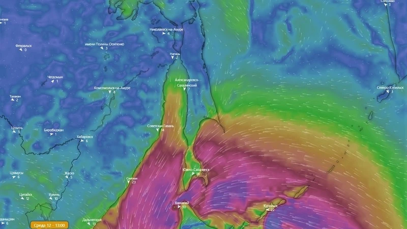 Непогода обрушится на Сахалин и южную часть Курильских островов в среду, 12 января. По данным портала windy.com, первыми на себя примут удар южные районы области — Невельский, Холмский, Корсаковский, Анивский, Долинский и Томаринский городские округа, а также Южно-Сахалинск.