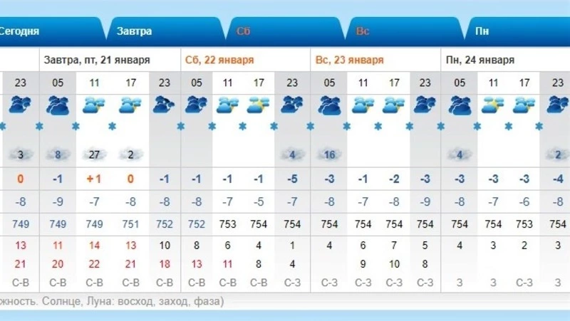 Согласно данным портала «РП5», на севере Курил завтра пройдет слабый снег. Ветер северо-восточный, 14-22 м/с. Температура воздуха — от 0°C до +1°C. Атмосферное давление низкое — 749-752 мм рт. ст.