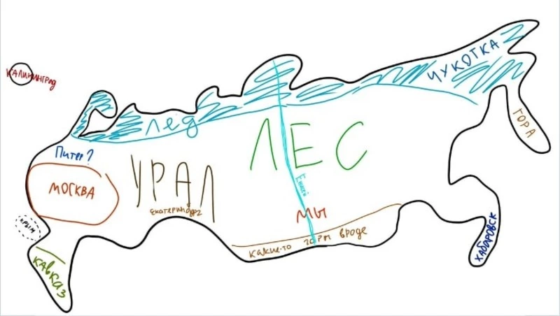Началась эта история почти две недели назад. Как сообщает издание Twizz, тогда один из пользователей соцсети Twitter на полном серьезе задался вопросом — зачем помимо Москвы и Санкт-Петербурга метро есть еще и в других городах России? Дальше его сообщение разлетелось среди других пользователей и одна из них в обсуждении вопроса отправила зарисовку того, как она видит нашу страну. При этом девушка отметила, что это неправильно и смешно, и она это прекрасно понимает.