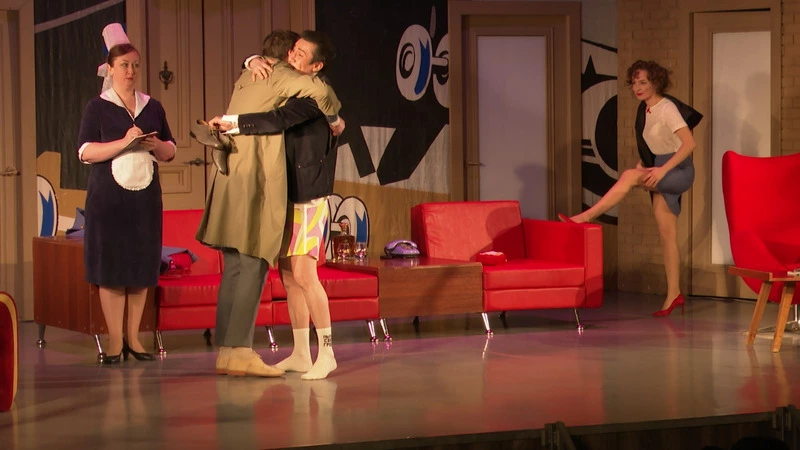Главный герой спектакля — молодой повеса, который встречается с тремя девушками. Все они работают стюардессами в разных авиакомпаниях. И каждая считает, что она и есть та единственная, о которой мечтает их идеал. После каждого эмоционального выпада актеров или смешной сцены все звуки в зале заглушают аплодисменты зрителей. А приключения главного героя, когда к нему приехали сразу все его возлюбленные, тем более не оставляют равнодушным никого.