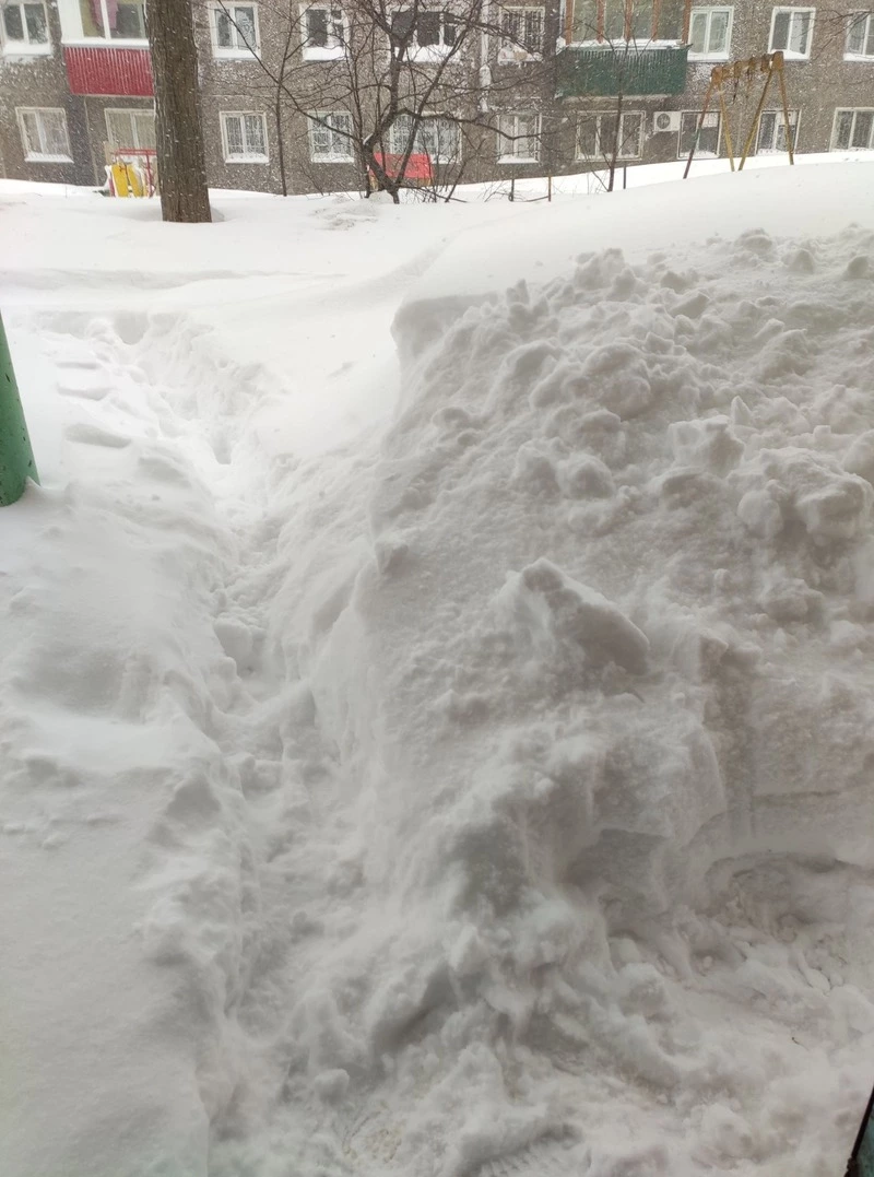 «После циклона 21.02.2022г. не расчищена придомовая территория, затрудняет проход, а также проезд экстренных служб. Необходимо экстренно принять меры к расчистке по проспекту Победы, 95», — обращаются к администрации горожане.