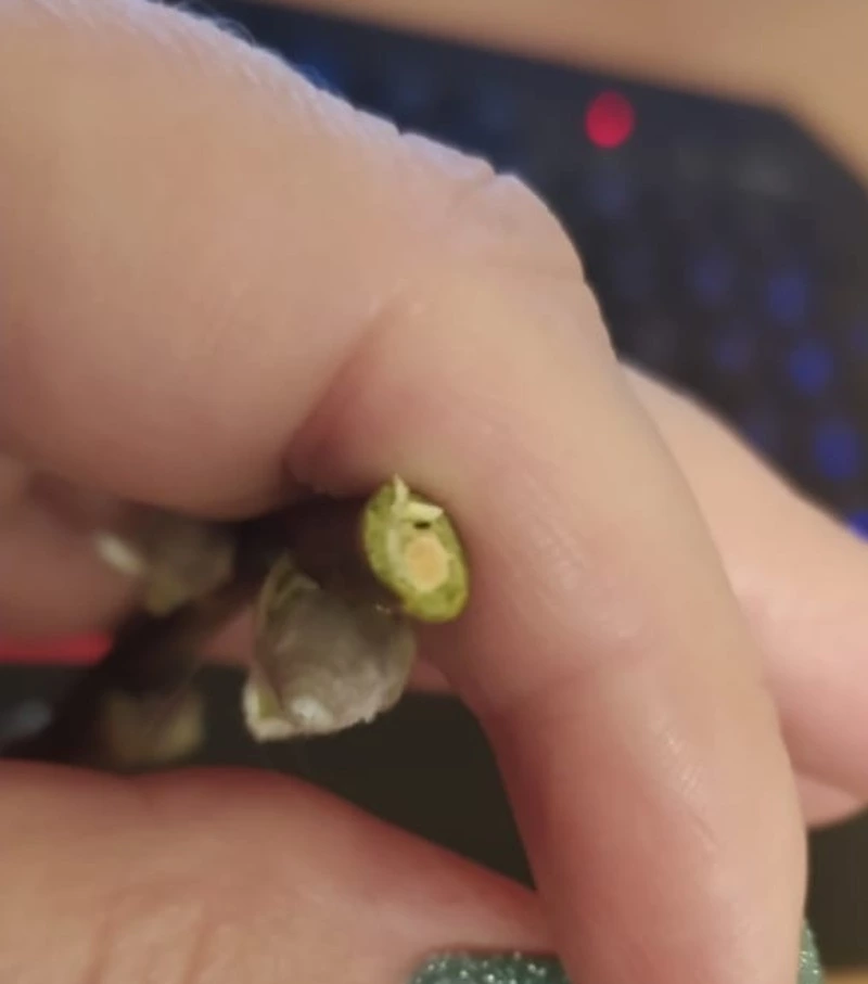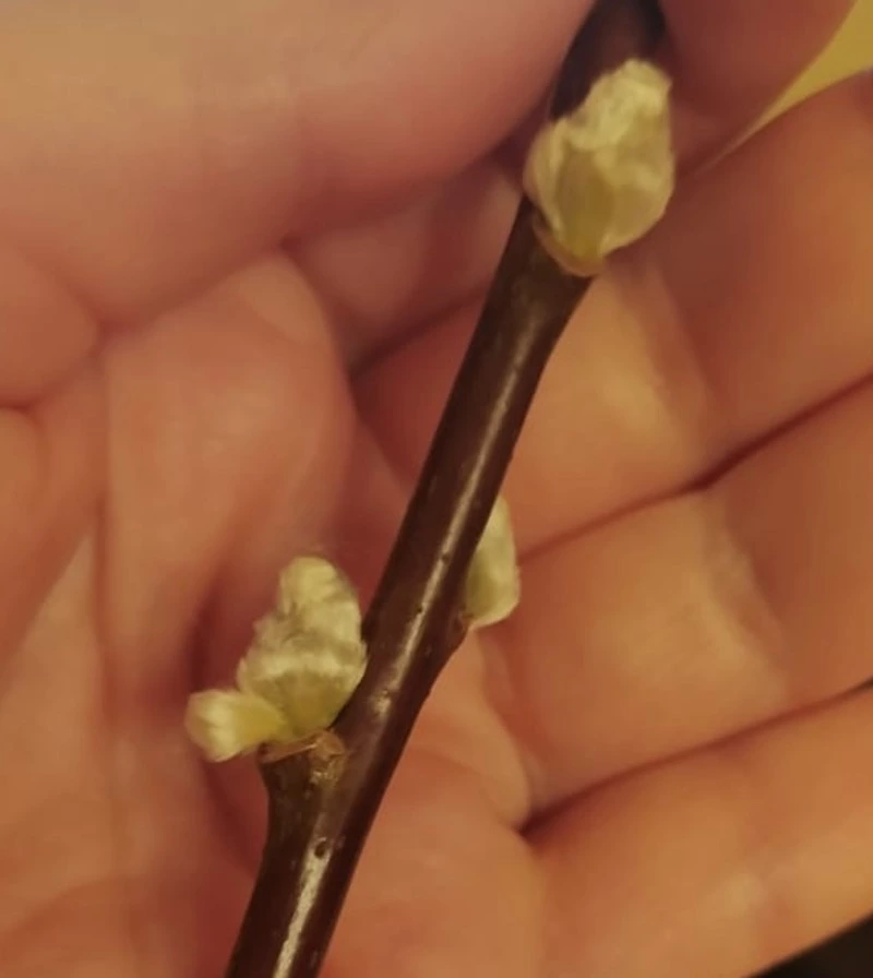 Девушка поделилась фотографиями поразительной находки. На них действительно видно зеленые «внутренности» вербной веточки, которые навряд ли могут быть у прошлогоднего, срезанного растения.