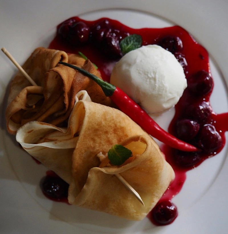 Кафе «КУЛИБИН» — уютное место в центре Южно-Сахалинска, где помимо блинов можно заказать еще и очень вкусный кофе. Здесь есть блинчики с бананом и шоколадом, с апельсином, лососем, брокколи, сыром, печенью. Также в этой кофейне предлагают блины с начинкой по типу салата «Цезарь». У каждого из блюд — одна цена — 330 рублей.