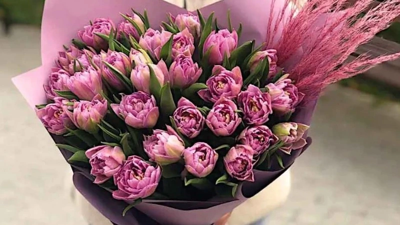 Мастерская предлагает не обычные тюльпаны, а пионовидные сорта «Ду Дабл». Букет из 21 цветка стоит 3 690 рублей. Доставка по городу будет бесплатной, если букет стоит дороже 4 000 рублей. В противном случае курьеру придется заплатить от 250 до 450 рублей.