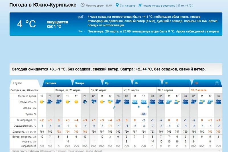 По данным синоптиков, юг Сахалина сильный ветер юго-западного направления накроет во второй половине дня во вторник, 29 марта. Его порывы будут достигать 13-19 м/c. При этом ожидается малооблачная погода, воздух прогреется до +5 градусов. Аналогичная картина будет наблюдаться и на следующий день, только ветер станет северо-западным. Улучшится погода поздно вечером.