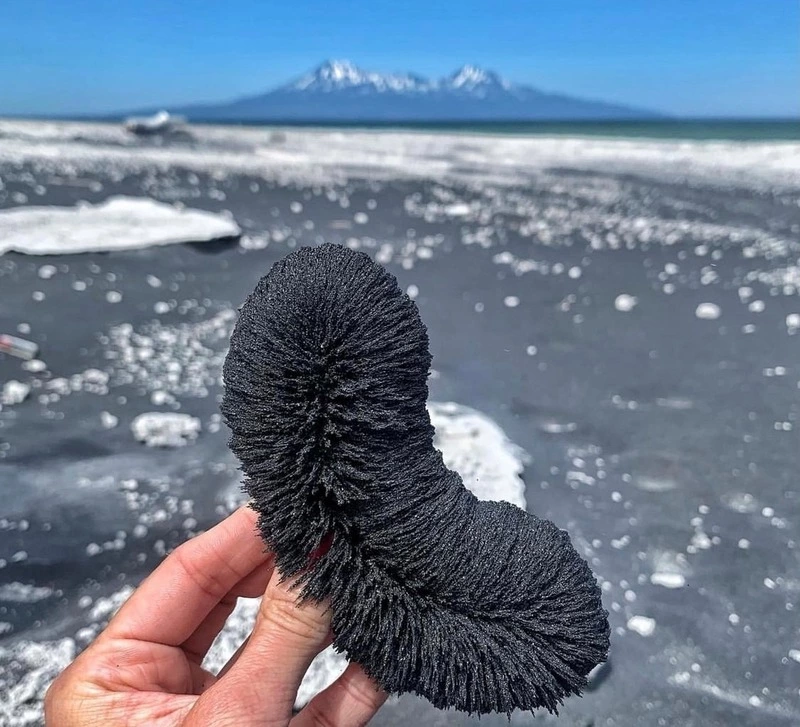На Итурупе есть Черные скалы — темные базальтовые образования в виде трубок на черном пляже. Густой оттенок дает титано-магнетитовый песок вулканического происхождения, который может магнититься, как и все металлы. Когда-то давно его планировали добывать в промышленных масштабах для производства титана, но проект вовремя остановили, поскольку он мог навредить природе. Разрушать пляжи с песком таких необычных свойств нельзя, так как они служат ориентиром для рыб и птиц.