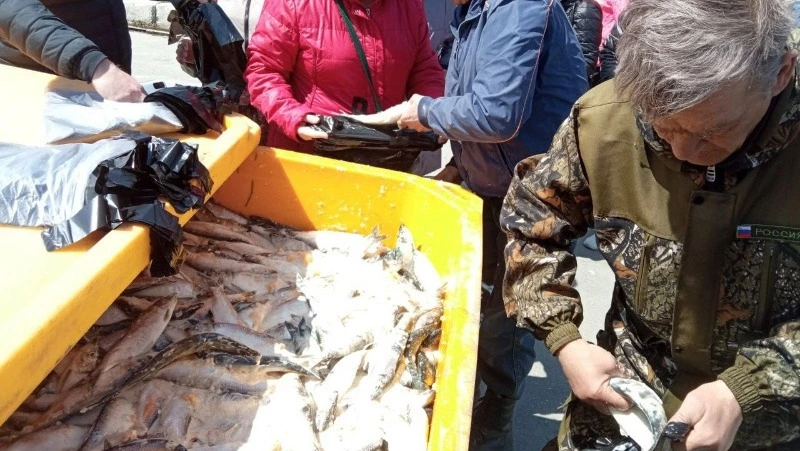 В частности, ролик выложили в Telegram-канал «Долинский район». На нем видно, что желающих получить бесплатную рыбу оказалось немало.