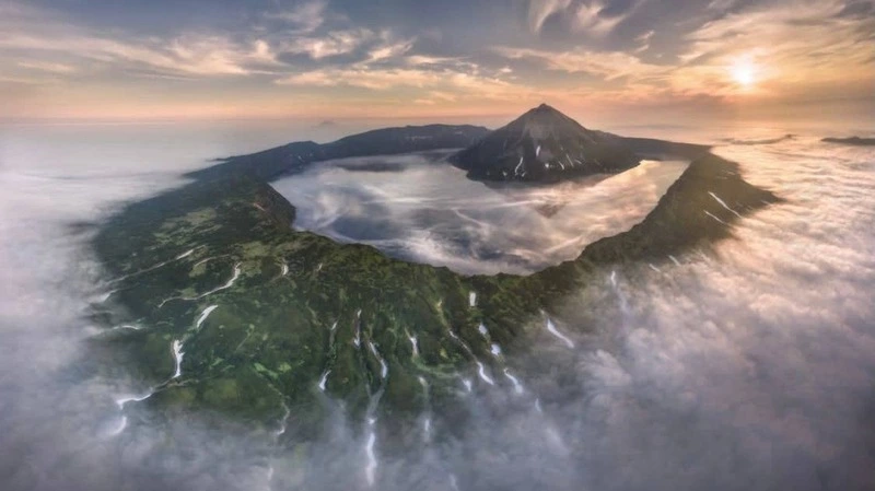 «Потрясающий вулкан Креницына в кольцах тумана и озера! Бесспорно, остров Онекотан — один из красивейших островов Курильского архипелага. Сделать здесь красивые кадры — мечта любого фотографа, путешествующего по Курилам», — подписал снимок Андрей в своих соцсетях.