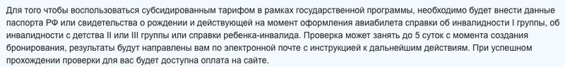 «Согласно Постановлению Правительства РФ, оформление билетов по спецтарифам осуществляется одновременно с предъявлением документа установленного образца, подтверждающего факт установления инвалидности. При покупке билетов на сайте проверить действительность документа, подтверждающего инвалидность, а также его соответствие требованиям Постановления невозможно», — пояснили в пресс-службе авиаперевозчика.