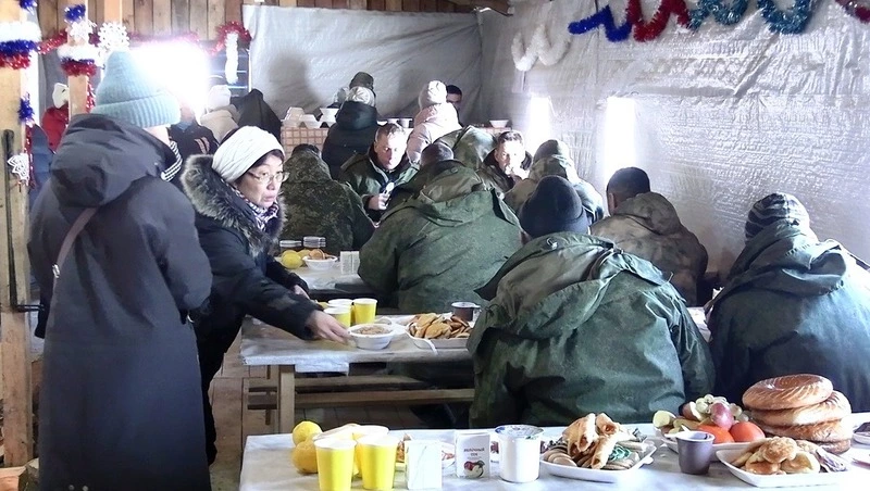 По данным пресс-службы Восточного военного округа, каждый из них приготовил для солдат блюда своей традиционной кухни. На стол выставили блюда русской кухни, салаты от корейской диаспоры, татары и киргизы предоставили свои национальные сладости, азербайджанцы передали фрукты, а таджикские волонтеры приготовили плов.