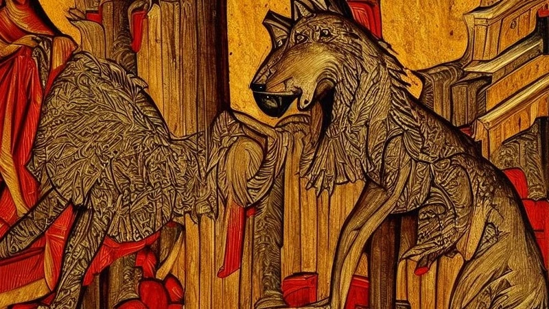 Волк из «Ну, погоди!» органично вписался в иконописный стиль.