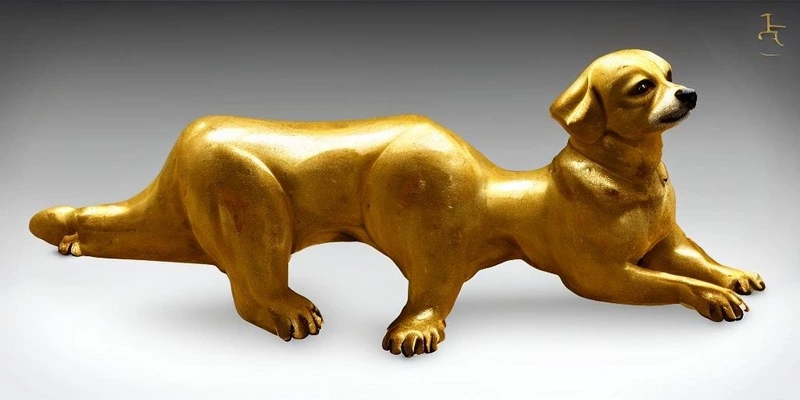 Пес Шарик стал мутантом с непонятным расположением задних конечностей, а еще покрыт золотом.