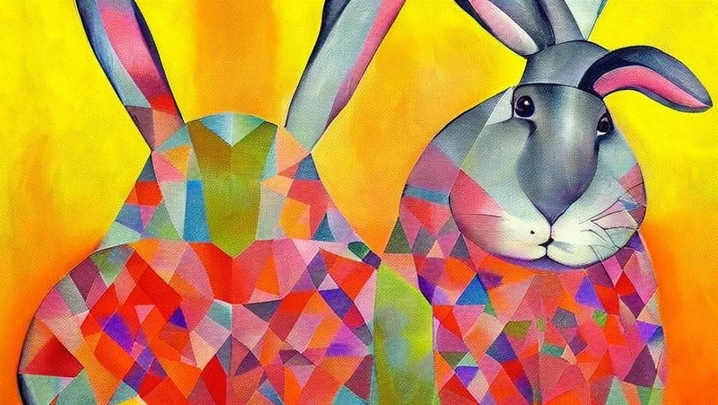 Заяц из «Ну, погоди!» изображен в духе работ Казимира Малевича.