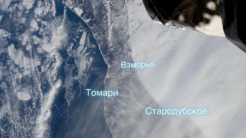 На границе темно-синего моря и белоснежной земли определили и подписали центральный город Томари. Севернее от него узнали другой населенный пункт — Взморье, а южнее — Стародубское.