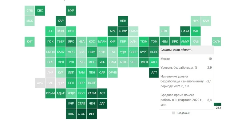 Что касается времени поиска работы в третьем квартале 2022 года, то, по подсчетам специалистов, у жителей Сахалина это в среднем занимало 8,4 месяца. Средний по России результат — 6 месяцев.
