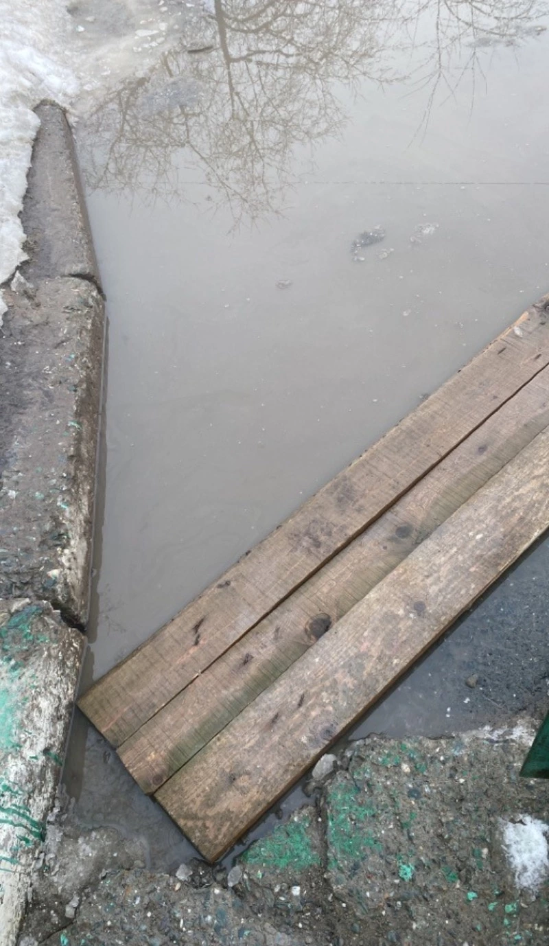 К детскому саду «Русалочка» на улице Есенина можно добраться лишь по деревянным доскам. Островитяне сообщили, что такая ситуация возникает уже не первую весну.