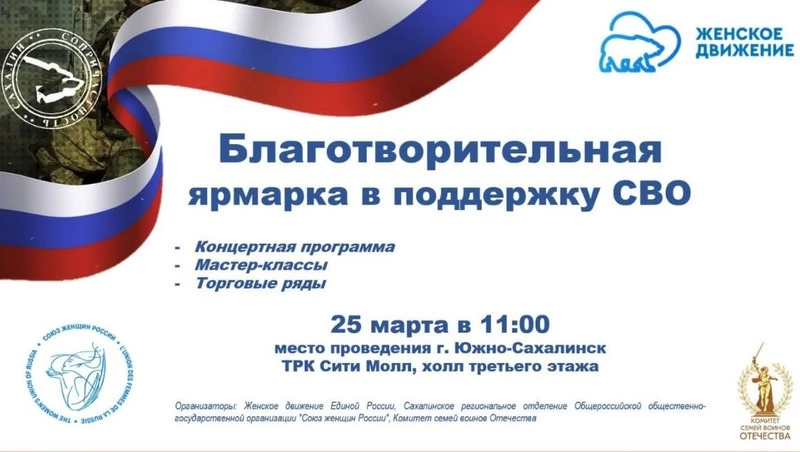 Мероприятие организовали при поддержке «Женского движения Единой России», Сахалинского регионального отделения Общероссийской общественно-государственной организации «Союза женщин России», а также Комитета семей воинов Отечества.