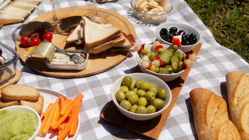 Чтобы пикник удался, необходимо заранее составить меню. Важно, сразу исключить скоропортящиеся продукты — молоко, сметана, салаты с майонезом и другие. Кроме того, в жаркую погоду усиливается жажда. Следует взять достаточное количество негазированной воды. Можно добавить лимон — он хорошо утоляет жажду и освежает. Далее примерный перечень продуктов может выглядеть так: