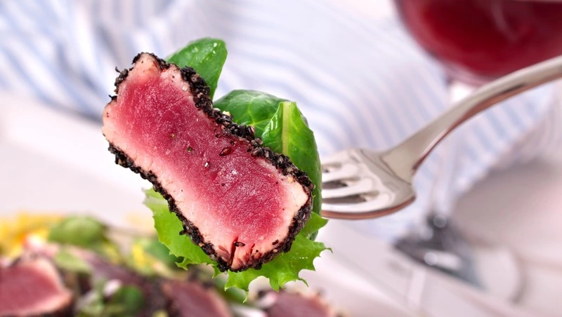 3. Тунец на гриле с соусом терияки: используйте гриль или обжарьте на сковороде тунец, нарезанный на стейки, с солью и перцем. Подавайте с соусом терияки и кунжутом.