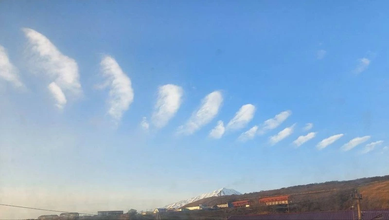 Снимки необычных облаков над островом Итуруп появились в Telegram-канале «ЧП Сахалин».