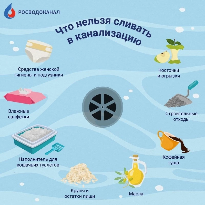 Список предметов и веществ, которые при смыве могут доставить большие проблемы всей сети водоотведения, опубликовали в Telegram-канале «Росводоканал Сахалин». В перечень вошли: