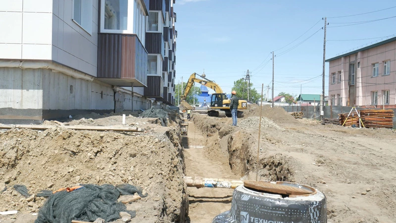 В Долинске по улице Хабаровской прямо сейчас идет строительство двух пятиэтажных домов — на 75 и на 45 квартир. Все они монолитные, с повышенной сейсмоустойчивостью. Тут же на строительной площадке выкопан котлован под фундамент третьей многоэтажки — проект на нее уже готов.