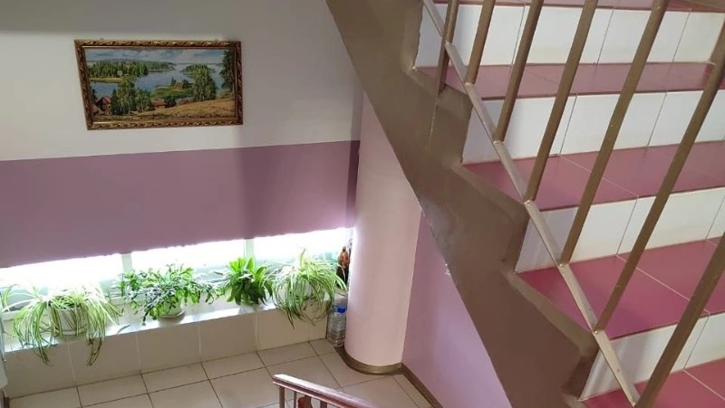Ремонт в подъезде № 3 на улице Мичурина, 5 выполнили в бело-розовых тонах. На стенах общедомового пространства теперь висят картины, а все лестничные площадки украсили комнатными цветами — за ними ухаживают сами жильцы.