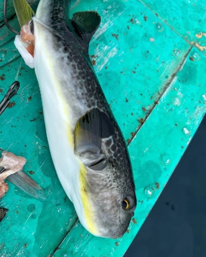 В комментариях к фото несколько людей рассказали, что ему посчастливилось поймать бурого скалозуба, или фугу. Этот вид рыбы известен своей популярностью у различных гурманов, а также смертельным ядом в некоторых местах. Судя по информации из открытых источников, этот морской обитатель не редкий гость в наших краях.