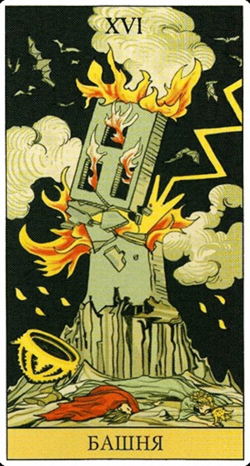 Башня. В общих раскладах эта карта означает крах всего привычного и радикальную зачистку рабочего поля. В вопросах о вашей повседневной деятельности следует рассматривать символ как глобальные изменения и отказ от существующего порядка действий. Но это не всегда говорит о негативных последствиях и болезненных ощущениях. Иногда стоит рассматривать «Башню» как необходимость перезагрузки и взгляда на проблему под другим углом.