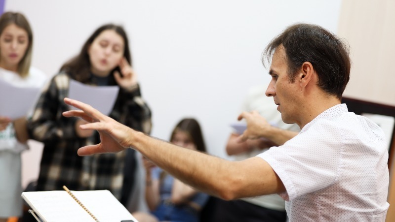 Но, опять же, для академического хора нужна академическая вокальная школа, которую необходимо пройти, будучи в музыкальной школе, в училище, в колледже или высшем учебном заведении, закончить по направлению «Академический вокал» или «Хоровое исполнительство», а у нас академической школы, как системы, на Сахалине долго не было. Только сейчас что-то начинается, например, открыли в коллеже отделение по направлению «Академический вокал». В связи с этим лично у меня возникает некий диссонанс, потому что с каждым из артистов хора необходима большая работа по нахождению академической манеры звука, по его удержанию, поскольку часть хора — это студенты эстрадного направления, звукооператорского направления, есть у нас и инструменталисты-гитаристы. Но почему-то именно представители трех последних категорий любят петь больше, чем другие.