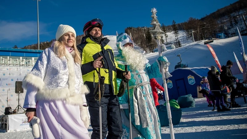 Как сообщили в пресс-службе министерства спорта Сахалинской области, сотни жителей островного региона открыли сезон на СТК «Горный воздух». Посетители, которые пришли на праздник в стилизованных и новогодних костюмах, с 11:00 до 11:45 смогли бесплатно подняться до средней станции комплекса. Там гостей встретили Дед Мороз и Снегурочка с подарками.
