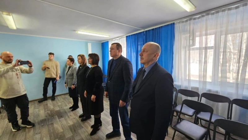 Кроме того, специально для губернатора организовали выступление оркестра. Ребята исполнили патриотическую песню «Встанем» популярного в России артиста Шамана.