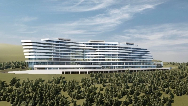 На «Горном воздухе» также построят пятизвездочный отель, рассчитанный на 190 номеров: 40 из них — семейные и один — президентский. Также в проекте предусмотрели водно-оздоровительный комплекс с тремя бассейнами, спа-центр, караоке-центр, ночной клуб и два ресторана.