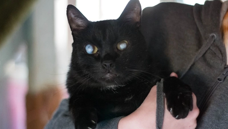 Кузя — очень компанейский, общительный, ласковый, любознательный котик. При этом он возрастной — в данный момент питомцу примерно 10 лет. Кузя имеет периферическое зрение, что никак не сказывается на качестве его жизни. Котик прекрасно ориентируется в пространстве и времени. Несмотря на достаточно зрелый возраст, Кузя очень активен, любит побегать, очень неравнодушен к пакетам и другим шуршащим предметам.