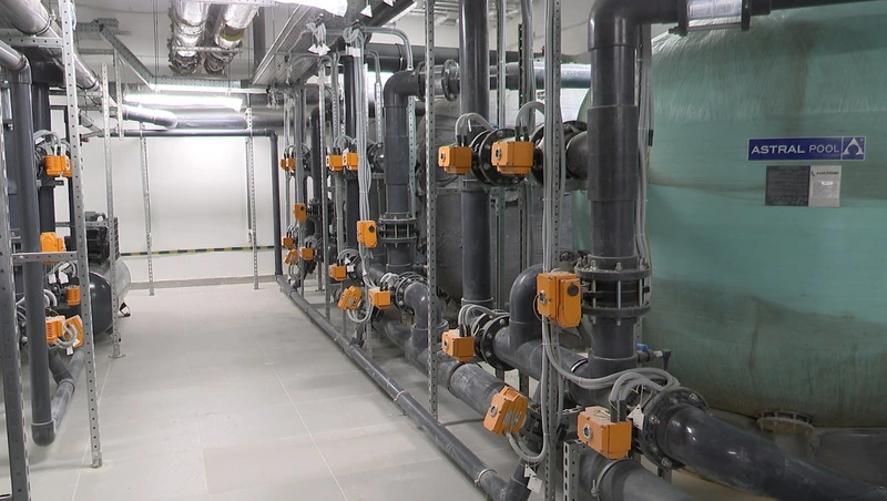 До ввода в эксплуатацию центра водных видов спорта остались считанные месяцы. Сейчас строители уже смонтировали систему водоподготовки. Помещение, в котором она расположена, называют сердцем объекта. Поступающая в емкости вода очищается, хлорируется и ионизируется.