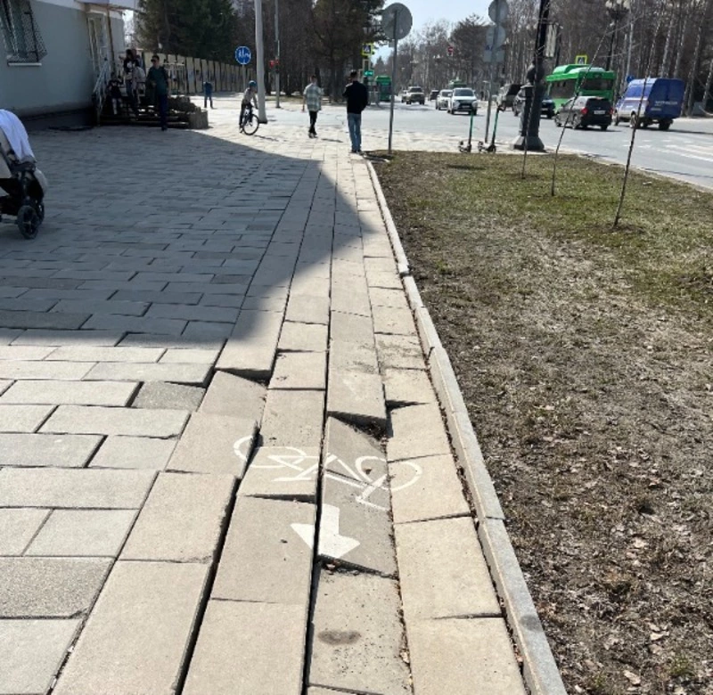 Судя по фото, из-за сезонных изменений и процессах в почве тротуарная плитка велодорожки «пустилась в пляс».