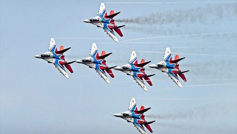 Флаг Москвы также основан на изображении Святого Георгия Победоносца. Он представляет собой темно-красное прямоугольное полотнище с двусторонним изображением в центре. На флаге изображен основной элемент герба города Москвы — Святой Георгий Победоносец на коне, поражающий копьем змия.
