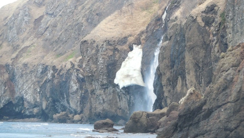 Но неподалеку с песчаного склона протянут канат. Придется приложить усилия. Перевалив мыс Тихий, спускаемся на пляж, за котором начинается подъем на мыс Красный, а далее тянется плато, поросшее травой. Склоны плато высокие, обрывистые. В мае на Сахалине начинается сезон клещей. Поэтому лучше обуться в высокую обувь. Тем более, что впереди поджидают заросли курильского бамбука и хвойные рощи, а также скалы.С мыса Красного к главной вершине хребта Жданко — пика Жданко — отходит набитая туристами тропа. Пару часов ходу, и вы на вершине, откуда открываются потрясающие пейзажи. Путь скалистым берегом подарит тоже незабываемые впечатления. Тем более что впереди череда водопадов, низвергающихся прям в морскую воду. Их десять, наиболее известны Третий и Второй. Водопад Второй на ветру шатается из стороны в сторону. Зрелище величественное.