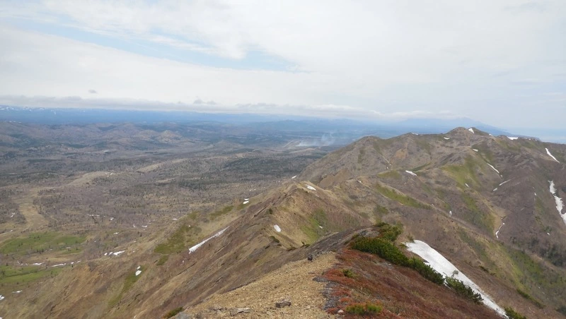 Пляж Буруны на севере венчаются грозным мысом Бурунным. Скалы выглядят совершенно неприступными. И если в прилив еще можно попытать счастья, то в прибой дело абсолютно безнадежное. Даже опытные туристы не рискуют — волны ожесточенно бьются от стены скал. Предпочитают дождаться отлива. Но можно подняться на хребет и пойти далее по верху. Склон не высокий — метров 400-500. Хребет Жданко имеется три основные вершины: гора Жданко, гора Владимирская и гора Богатырь. Именно к Богатырю (420 м) мы и выходим.