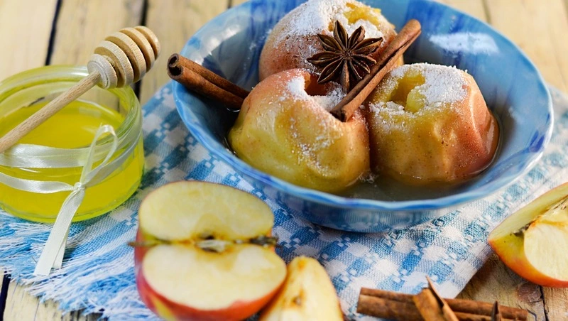 4. Наполните каждое яблоко медово-ореховой смесью.
