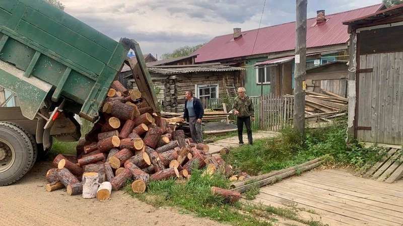 Михаил Бабчук совместно с главой села Ныш Ногликского района Ольгой Бородаевой оказал помощь в обеспечении дровами семье участника СВО и пенсионеру.
