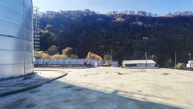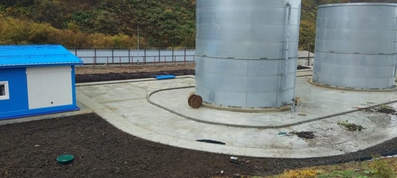 В настоящее время на объекте завершены все работы по установке станции водоподготовки с насосной станцией второго подъема ВПС-500, а также двух сборных стальных резервуаров для чистой воды РВС-400. Кроме того, смонтированы резервуары для технической воды и сбора дождевых стоков. Также была установлена блочно-модульная насосная станция водоснабжения, проложены сети водоснабжения, электроснабжения и связи, обустроены проезды, тротуары и отмостка.