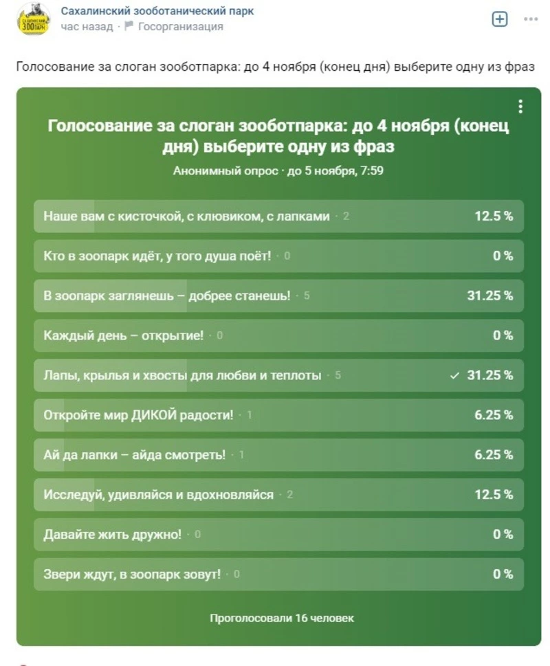 Голосование проходит в официальной группе зооботпарка «ВКонтакте».