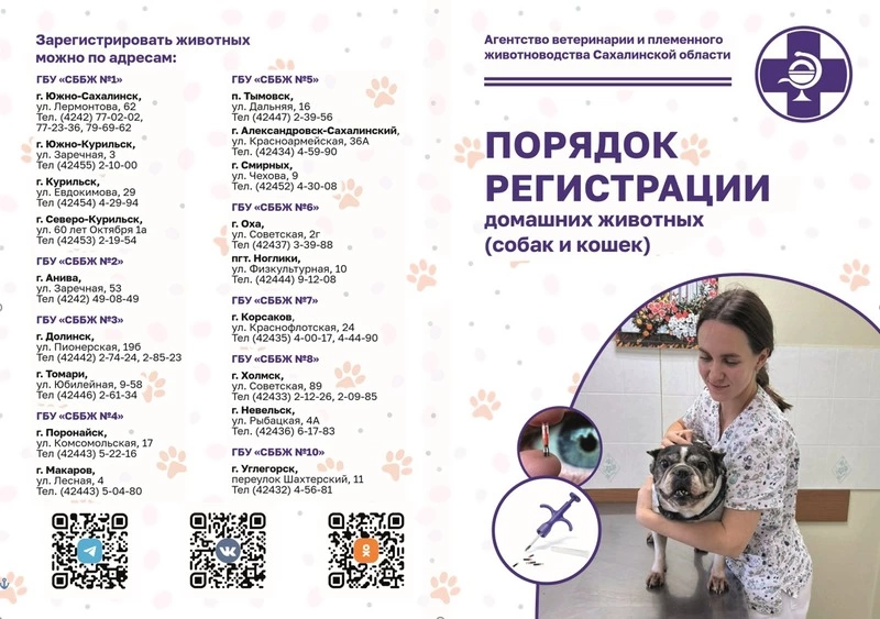 Регистрация — это постановка животного на учет в государственном ветеринарном учреждении, она необходима всем животным с двухмесячного возраста. В Сахалинской области процедура обязательна для всех пород кошек и собак без исключения. Для владельцев процедура бесплатная, стоимость компенсируют ветлечебницам из областного бюджета.