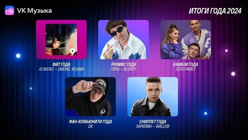 В новой номинации «Все треки в чарте» победили Aarne и BUSHIDO ZHO — все треки с их альбома WE LIVE ONLY ONCE попали в чарт «VK Музыка» сразу после релиза. Сингл «Больше чем все» Басты и Вассы Железновой получил награду «Трамплин года» как самая прослушиваемая работа в рамках проекта для молодых музыкантов. Лейблом года стал Golden Sound, а креативной командой — RNDM CREW.