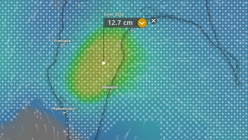 Наиболее сильный удар стихии придется на Макаровский, Поронайский и Углегорский районы, а также на Северо-Курильский район (в пятницу, 27 декабря). Там, по прогнозу, за 3 часа может выпасть до 12 см снега.