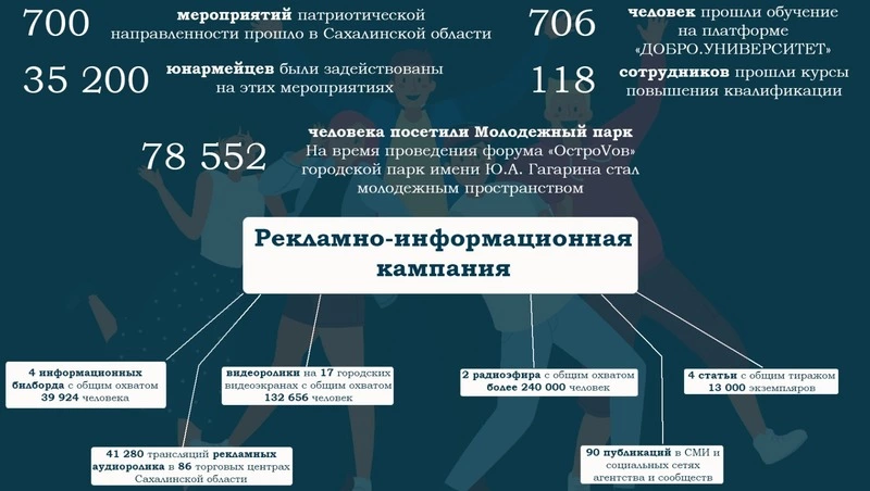 332 представителя Сахалинской области приняли участие во всероссийских и окружных молодежных форумах, 7 человек получили гранты на общую сумму 3,7 млн рублей.