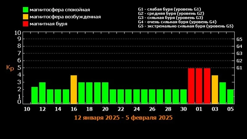 Однако в начале февраля ситуация изменится. 31 января и 1–2 февраля ожидаются магнитные бури уровня G1 (слабая). 3 февраля магнитосфера останется возмущенной.