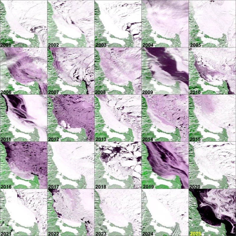 Telegram-канал проанализировал снимки со спутника за период с 2001 по 2025 год. При этом фокус специалисты направили на диапазон дат с 18 по 23 января. По кадрам видно, что за последние 25 лет залив Мордвинова впервые не покрыт льдом в конце января.