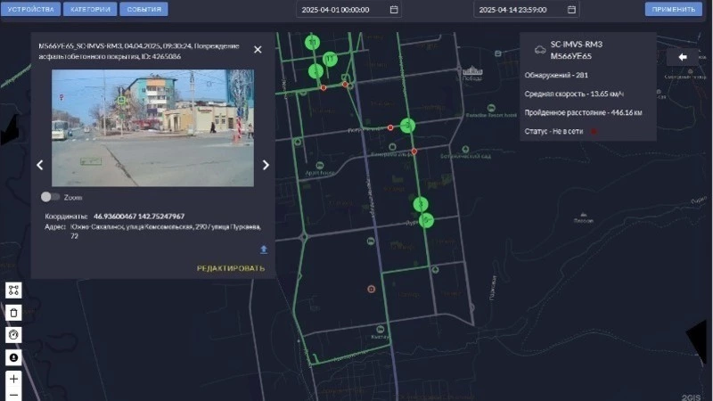В Сахалинской области к выявлению дефектов дорожного покрытия подключили комплекс нейросетевой видеоаналитики. Он позволяет оперативно обнаруживать повреждения на дорогах.